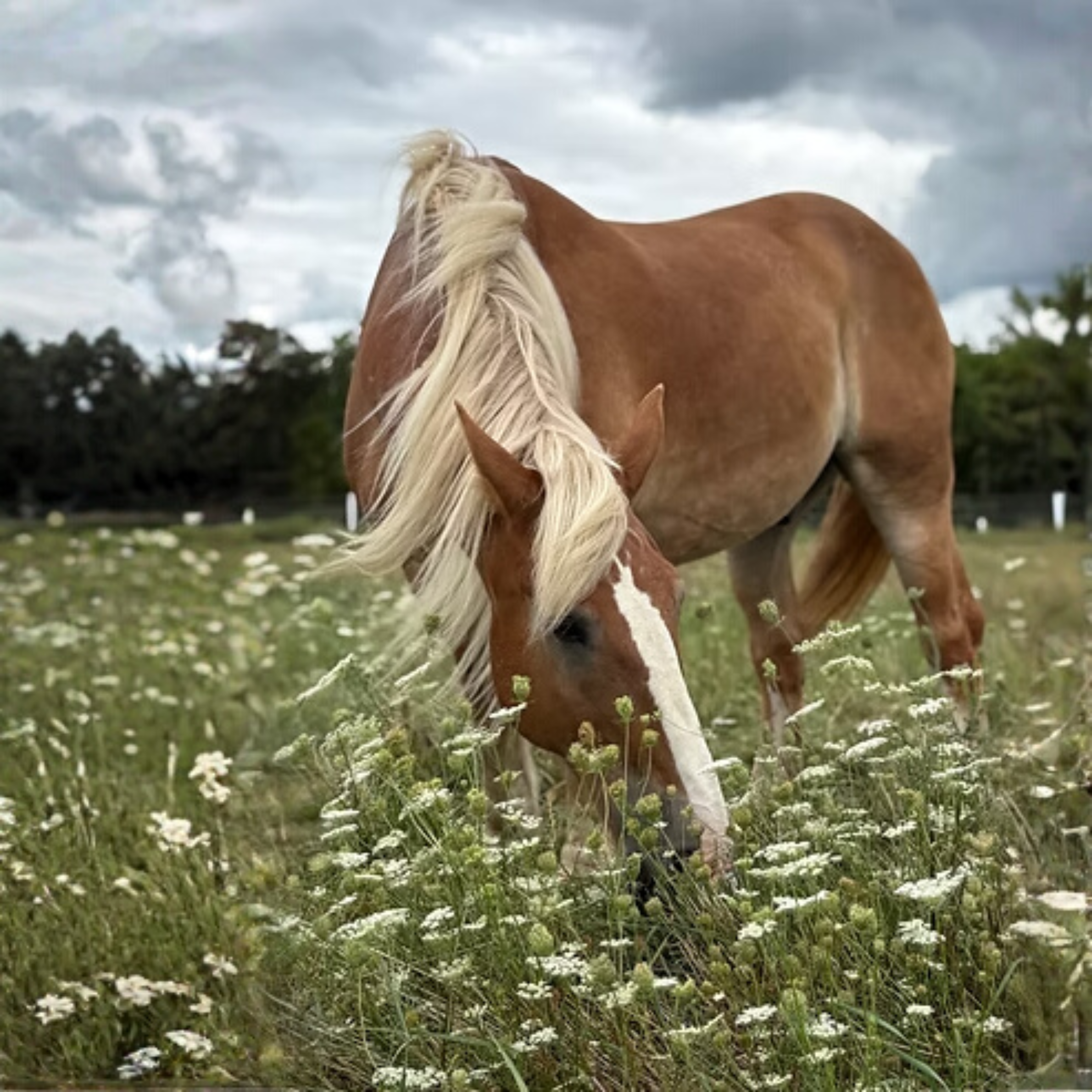 Out of all of our working horses, Willy has been here the longest. His recent retirement in 2024 was well deserved. No worries though, you'll still see him for grooming groups throughout the year, and for Horse Powered Reading and the Self-Regulation Camp in the summer. Wherever Willy is, his bestie Little Man is not far behind.