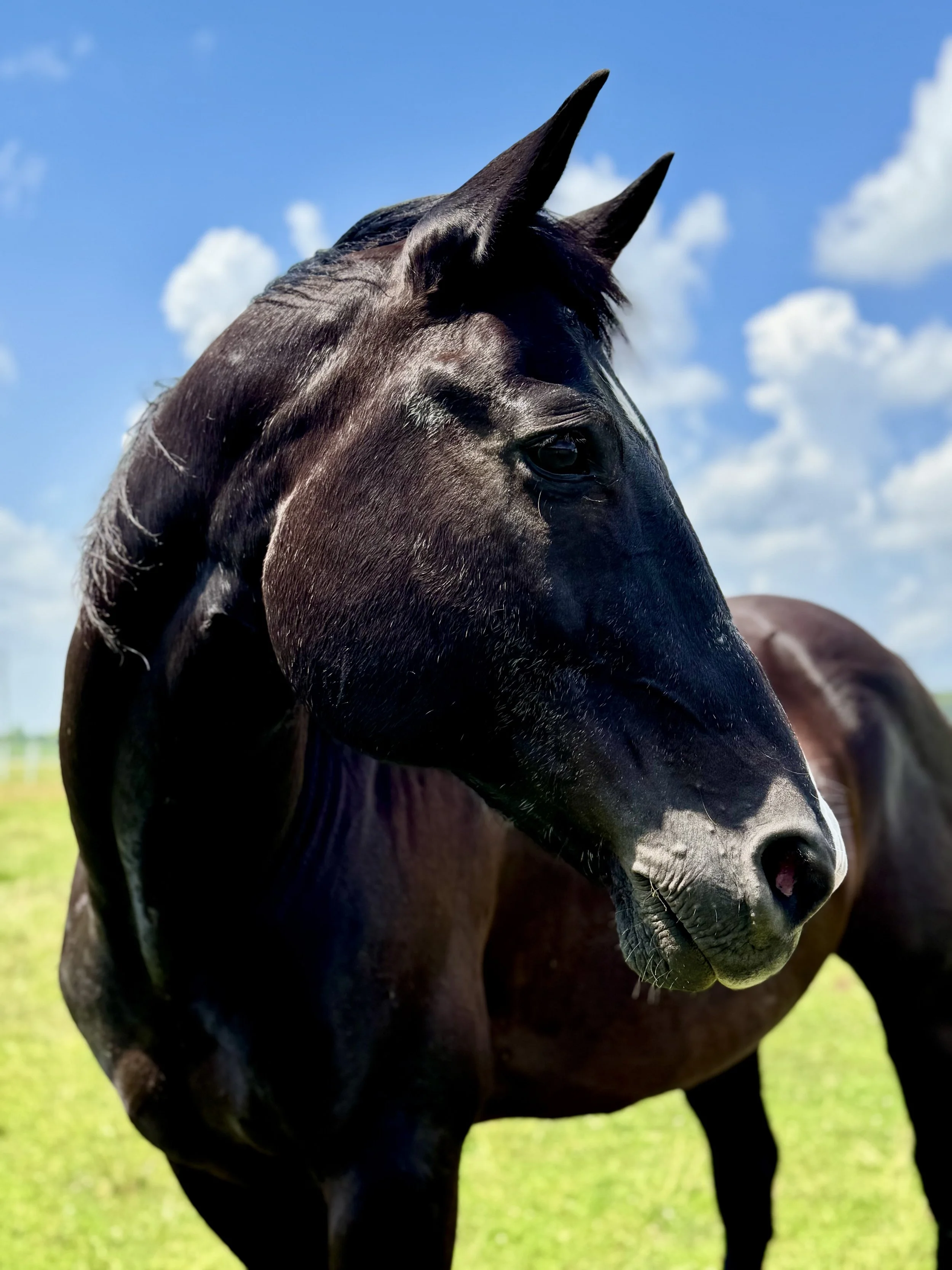 Eclipse has done a little bit of everything before coming to CCEC. He was a trail riding horse at Mohican, a show horse for his kids, and now he is ready for his career at Challenged Champions! His jet-black coat easily helps him stand out from the herd and catch lots of admiring looks.