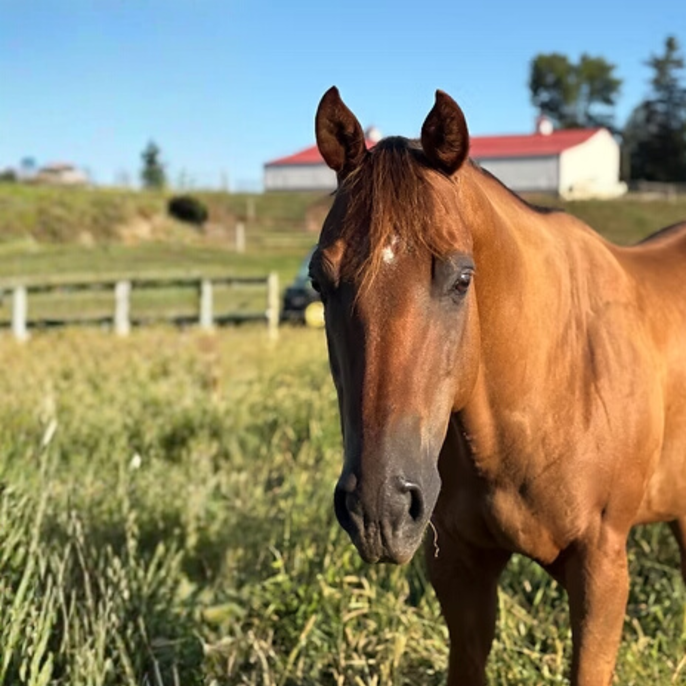 G-Dub started his journey as a teaching horse at the University of Findlay's Western farm as a reining horse. He has a calm demeanor and loves people. He is a faster version of Nic, but just as loving and sweet. He is just as popular here as he was at the university, not just with people, but the other horses too.
